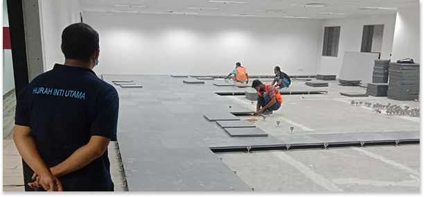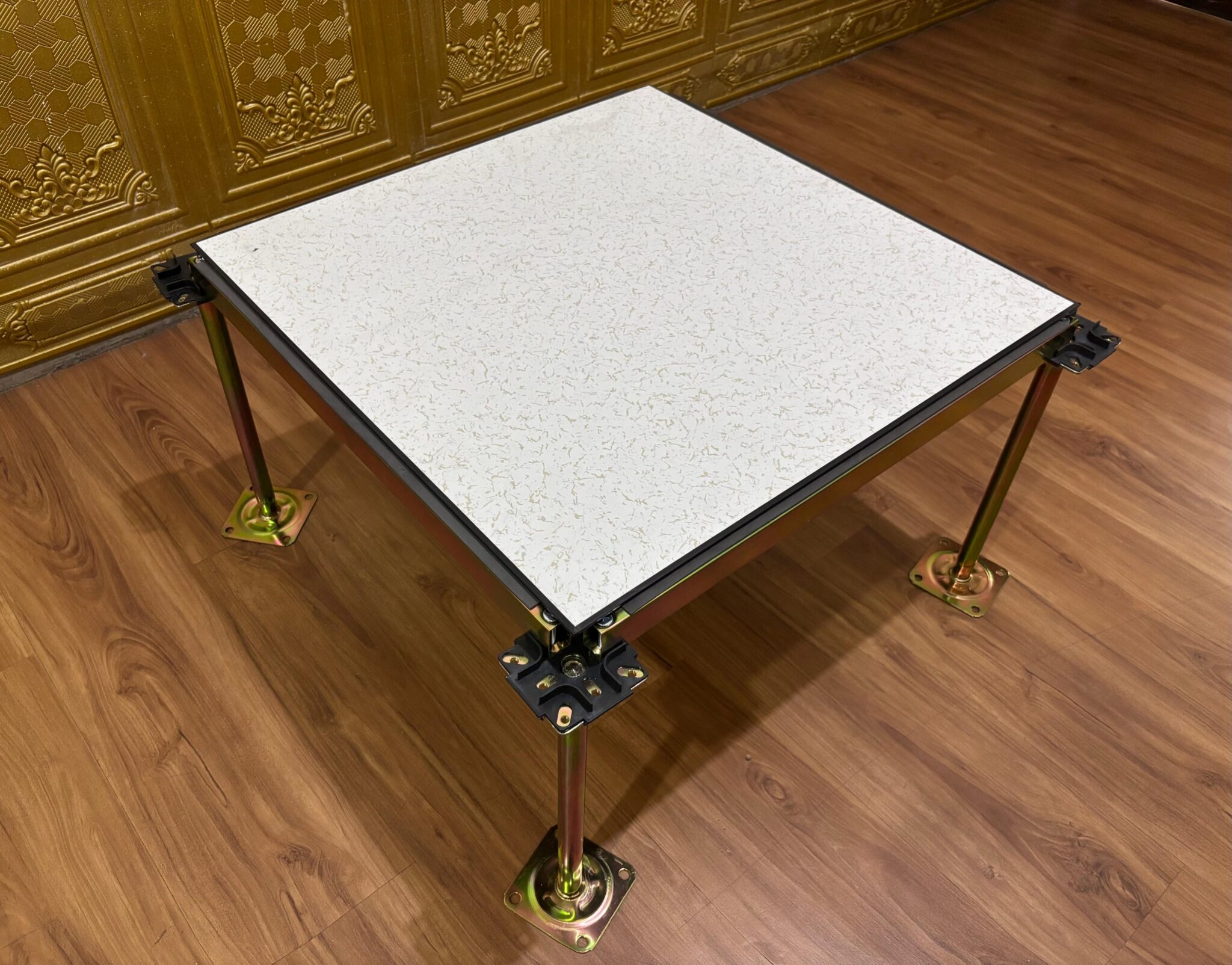 The panel is made of high quality deep stretch coil steel sheet and SPCC steel sheet , which is punched, spot-welded, coated with epoxy powder after has been phosphorated. The panel is filled with foamed cement inside. After being kept for a period of time, its forms a stable support structure. The top steel sheet is stuck with anti-wear and antistatic HPL. And the panel is installed with stringer and pedestal.